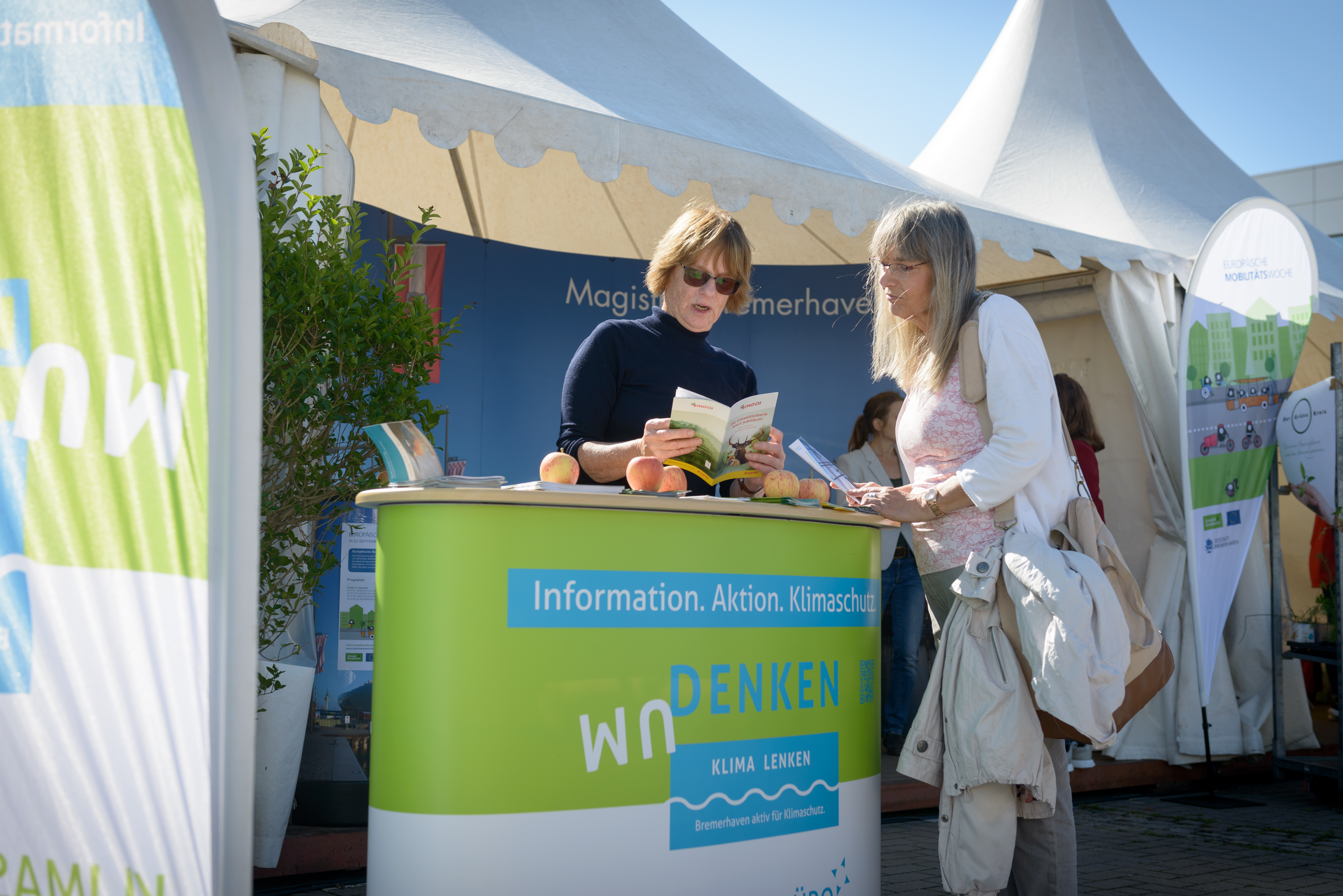 Bei bestem Wetter informierten sich mehrere Tausend Besucher*innen auf dem dritten Energie- und Klimastadttag am 11. September im Schaufenster Fischereihafen zu Themen rund um den Klimaschutz. An über 30 Ständen stellten Klimaschutzakteure aus der Region ihre Projekte vor und zeigten, wie man Klimaschutz in seinen Alltag integrieren kann. Dort wurden Lastenräder ausprobiert, Tipps zum Energiesparen gegeben oder Upcycling-Produkte in Augenschein genommen. Unter dem Dach des Klimaschutzankers, einer Kooperation der Landkreise Cuxhaven und Wesermarsch sowie der Seestadt Bremerhaven, stellten zahlreiche Vereine, Verbände und Beratungsstellen ihre Arbeit vor.